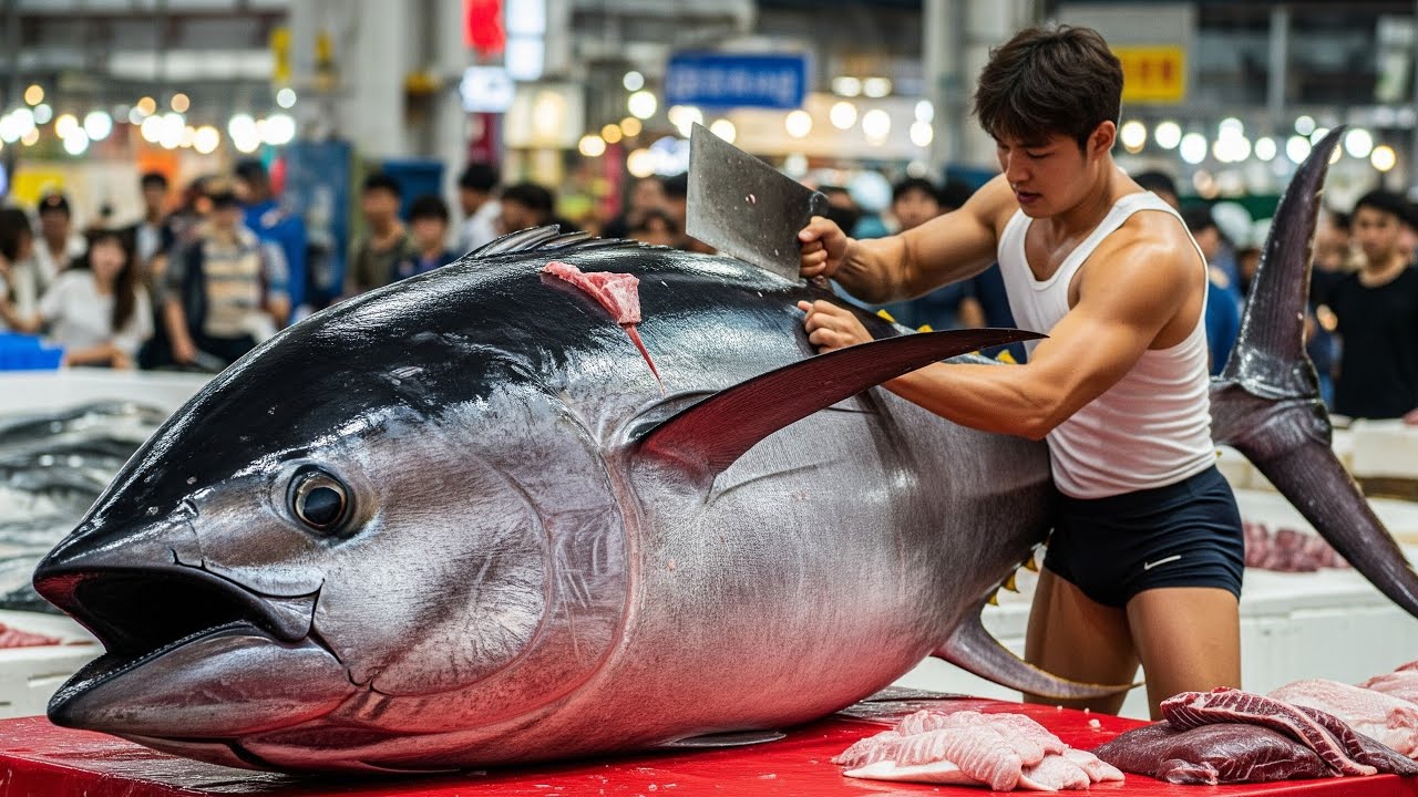 Hot Guy vs 485kg Sea Monster Bluefin Tuna Who Cuts Who? #TunaBattle